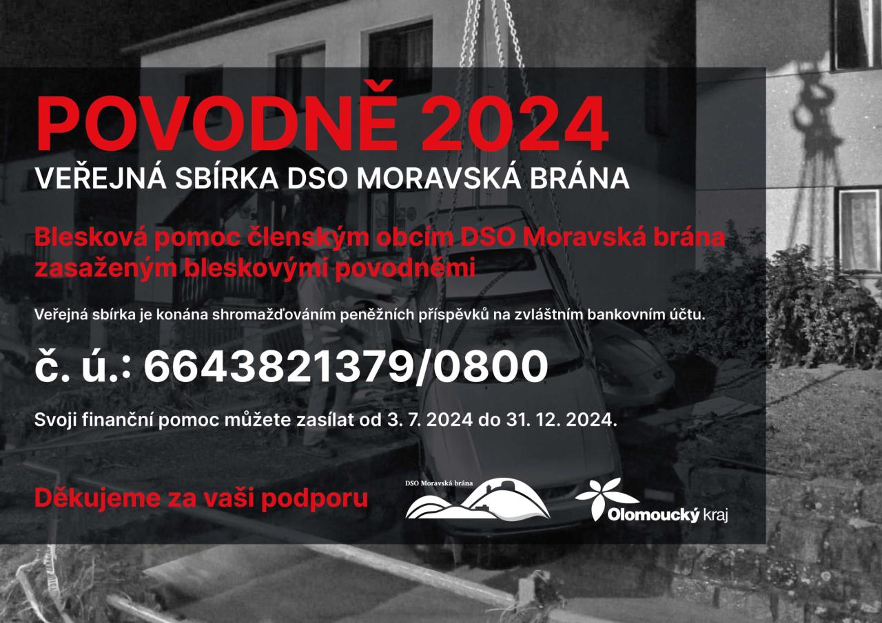 VEŘEJNÁ SBÍRKA DSO MORAVSKÁ BRÁNA NA POMOC ČLENSKÝM OBCÍM STIŽENÝM BLESKOVÝMI POVODNĚMI